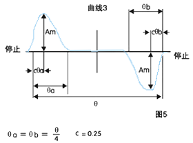 當(dāng)選擇凸輪曲線時,有必要考慮下面特性數(shù)值: Vm→最大速度 Am→最大加速 Jm→ 最大跳動 如果Vm較大,在突然停止時受到較大的力,因此,一般最好是Vm的 數(shù)值小,特別是在負(fù)荷重時,更有必要選擇小的vm,另外,Vm與凸輪的 尺寸密切相關(guān)?因此,如果曲線有最小的Vm,則凸輪的尺寸必須相應(yīng)減小。 另外,Vm不能大于1。 如果凸輪的曲線有大的Am,最大可允許負(fù)荷變的較小。因此,如果 在高速下轉(zhuǎn)動,就有必要選擇較小的Am曲線,在這種情況下,如果Am不 能小于4,Jm與振動有關(guān),因此最好Jm的值較小。 分度傳動裝置標(biāo)準(zhǔn)曲線由下面三種類型組成:變形梯形曲線(MT) 適合高速和輕負(fù)荷→圖3