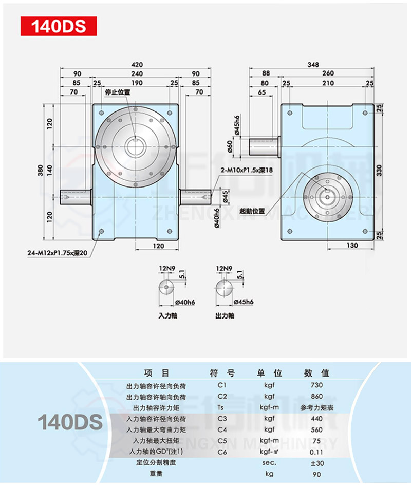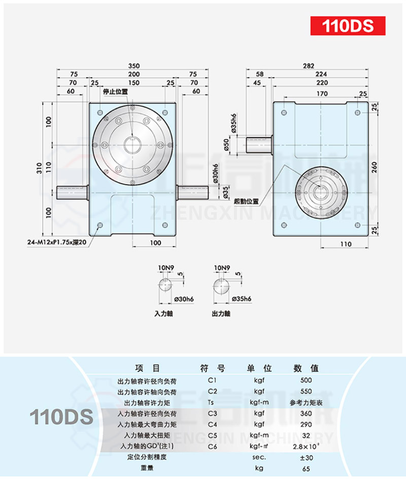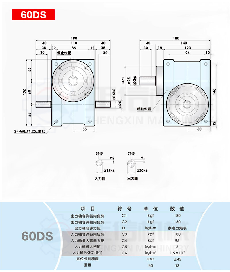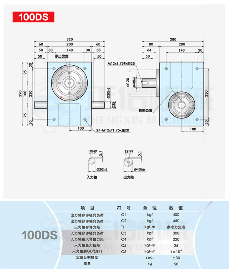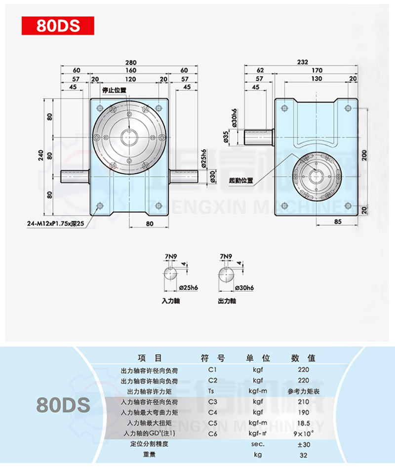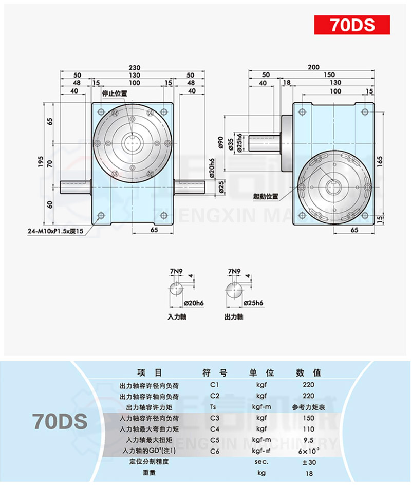 此系列機種為典型傳統(tǒng)式心軸造型,其在分割器上加工安裝配合齒輪、聯(lián)軸器或聯(lián)軸盤,需特別注重孔徑公差(+0.015/-0)、及鍵槽公差(+0.015/-0),其使用場合在輸送帶驅(qū)動、齒輪驅(qū)動、無間隙聯(lián)軸器結(jié)合驅(qū)動居多。